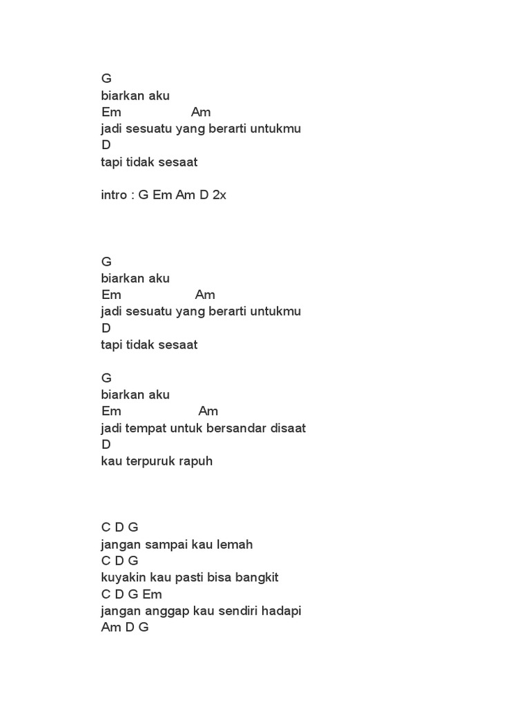 - Lirik Lagu Dan Chord Lirik Lagu Dan Chord Gitar Dhyo Haw Ada Aku Disini Kumpulan Lirik Lagu Pdf Document , C Biarkan Aku Am Jadi Sesuatu Yang Berarti Dm G Untukmu Tapi Tidak Sesaat.
