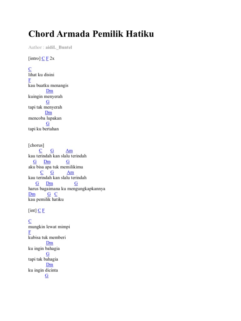 - Chord Gitar Armada Harusnya Aku Yang Disana Chordtela - Armada Pemilik Hati Chord Dan Lirik.