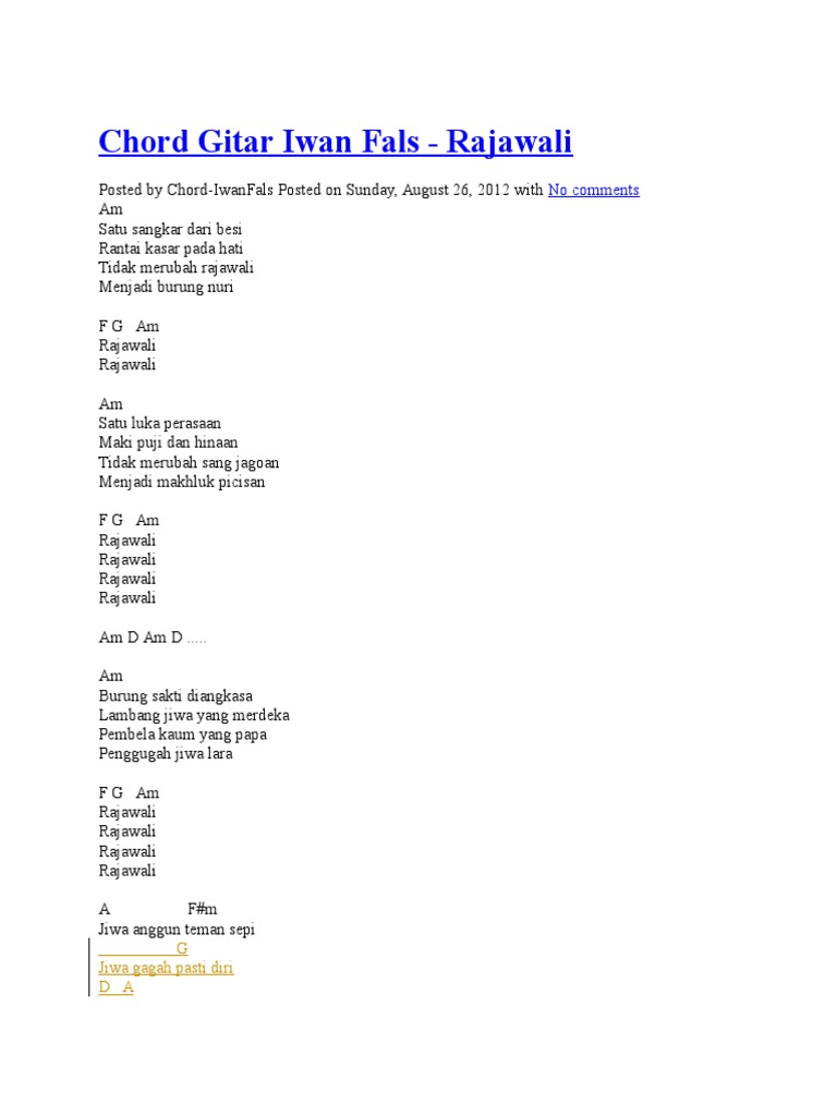 - Doc Chord Gitar Iwan Fals 22 Januari Dirja Lasut Academia Edu . C G Kuberikan Padamu Am G Setangkai Kembang Pete F G Tanda Cinta Abadi C Namun Kere.
