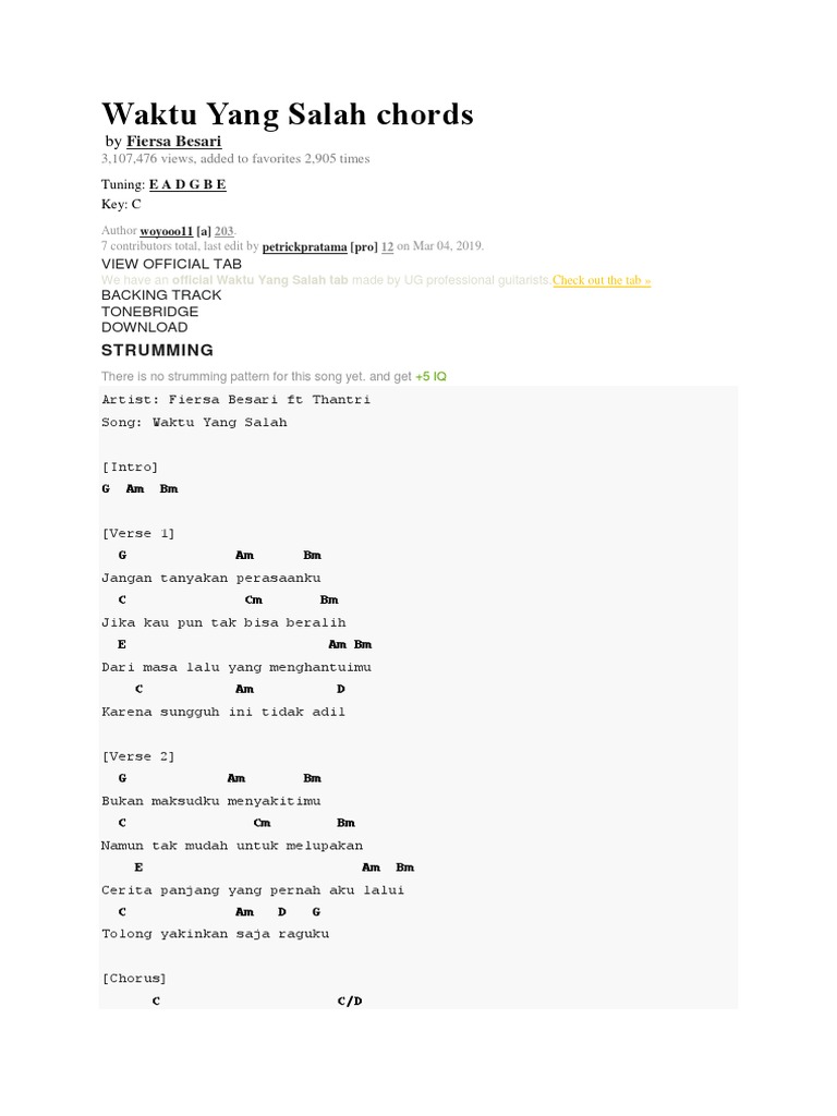 - Lirik Lagu Dan Chord Kunci Gitar Waktu Yang Salah . Learn To Play Guitar By Chord / Tabs Using Chord Diagrams, Transpose The Key, Watch Video Lessons Verse1: