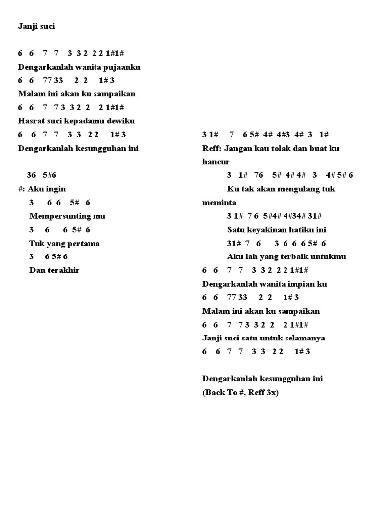 - Chord Gitar Dan Lirik Lagu Janji Suci Yovie And Nuno Dengarkanlah Wanita Pujaanku Tribun Manado - Video Tutorial Belajar Kunci Gitar Yovie And Nuno Janji Suci Petikan Mudah Klik Di Sini.