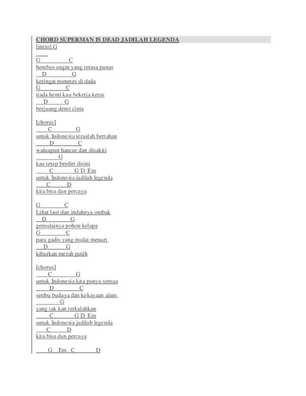 - Chord Superman Is Dead Jadilah Legenda Chord Gitar Indonesia Kumpulan Kunci Gitar Musik Indonesia Dan Mancanegara , G C Hembus Angin Yang Terasa Panas D G Keringat Menetes Di Dada G C Tiada Henti Kau Bekerja Keras.