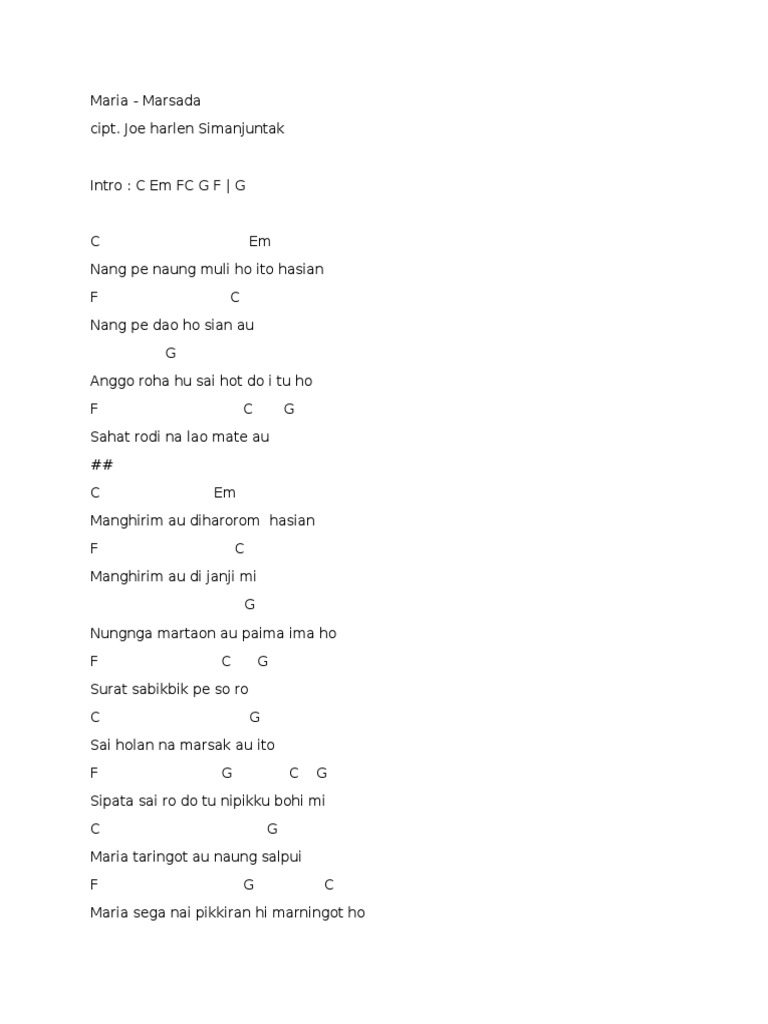 - Chord Lagu Batak Maria : Lyrik Lagu Batak Ingot Padantai Marsada Band.