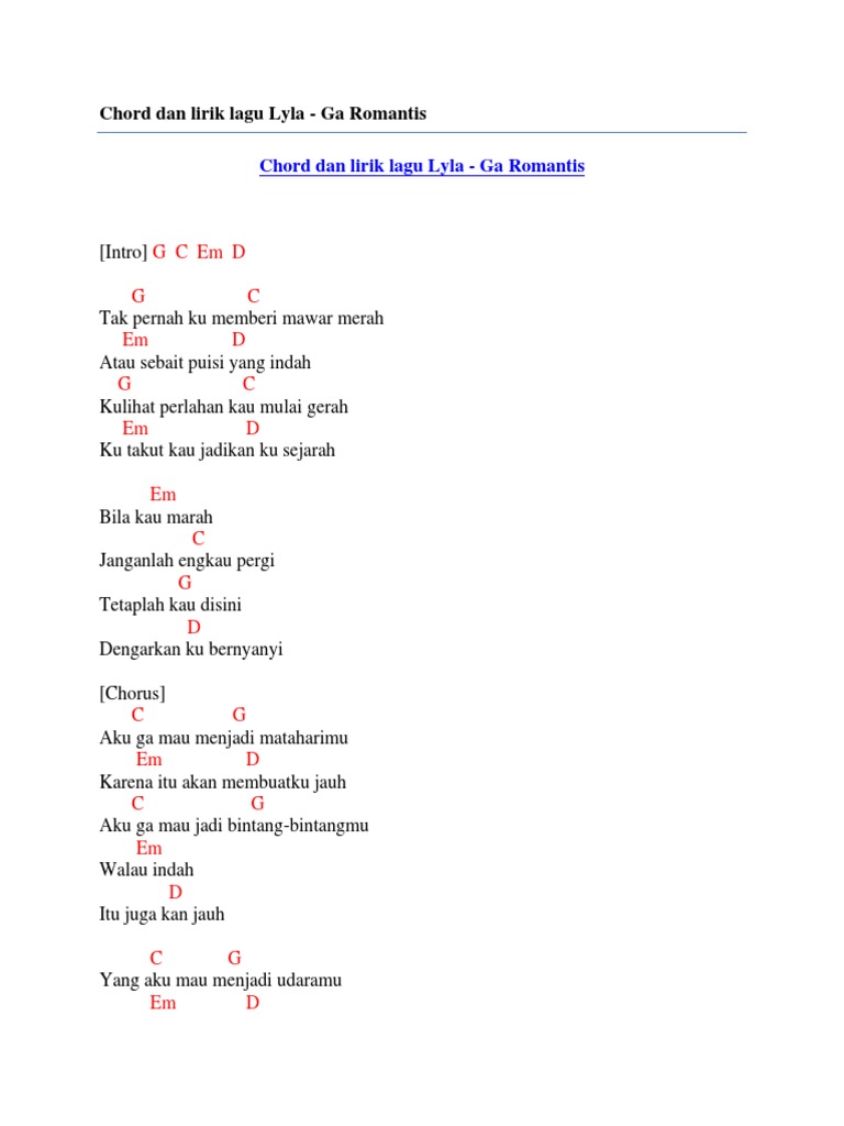 - 54 Chord Lagu Pop Romantis Tentang Cinta Paling Hits Populer Pingkoweb Com . G C Tak Pernah Ku Memberi Mawar Merah Em D Atau Sebait Puisi Yang Indah G C Ku Lihat Perlahan Kau Mulai Gerah Em D Ku Takut Kau Jadikan Ku Sejarah.