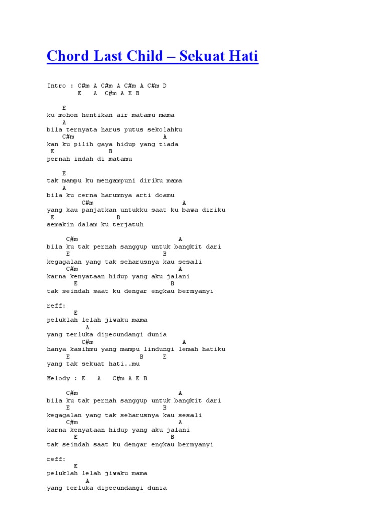 - Chord Kunci Gitar Lagu Ketidakrelaanku Dari Last Child Dradio 104 3 Fm Jambi . Berikut Ini Adalah Lirik Dan Chord Lagu Sekuat Hatimu Dari Last Child.