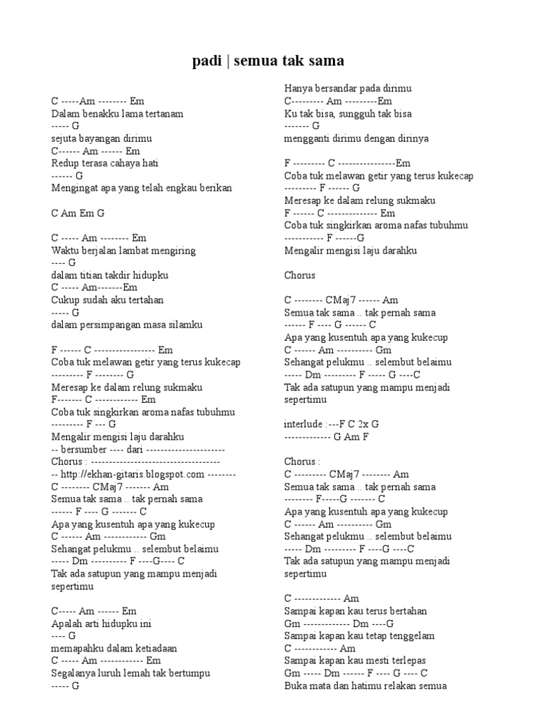 - Chord Kunci Gitar Padi Semua Tak Sama Kuncilagu Net : C Am G Semua Tak Sama, Tak Pernah Sama.