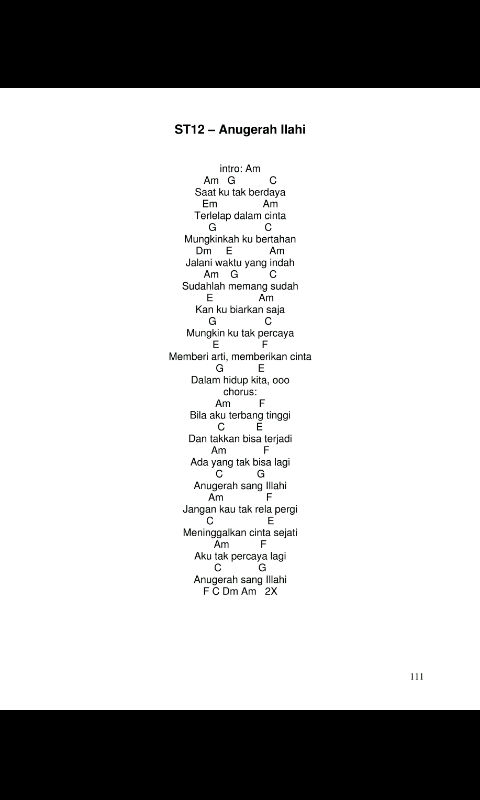 - Chord Lagu St 12 . C Em Cinta Memang Tak Selamanya Bisa Indah G A Dm Cinta Juga Bisa Berubah Menjadi Sakit Fm C Begitu Yang Kurasakan Kini Dm G Perih Hatiku, Tinggal Kehancuran.