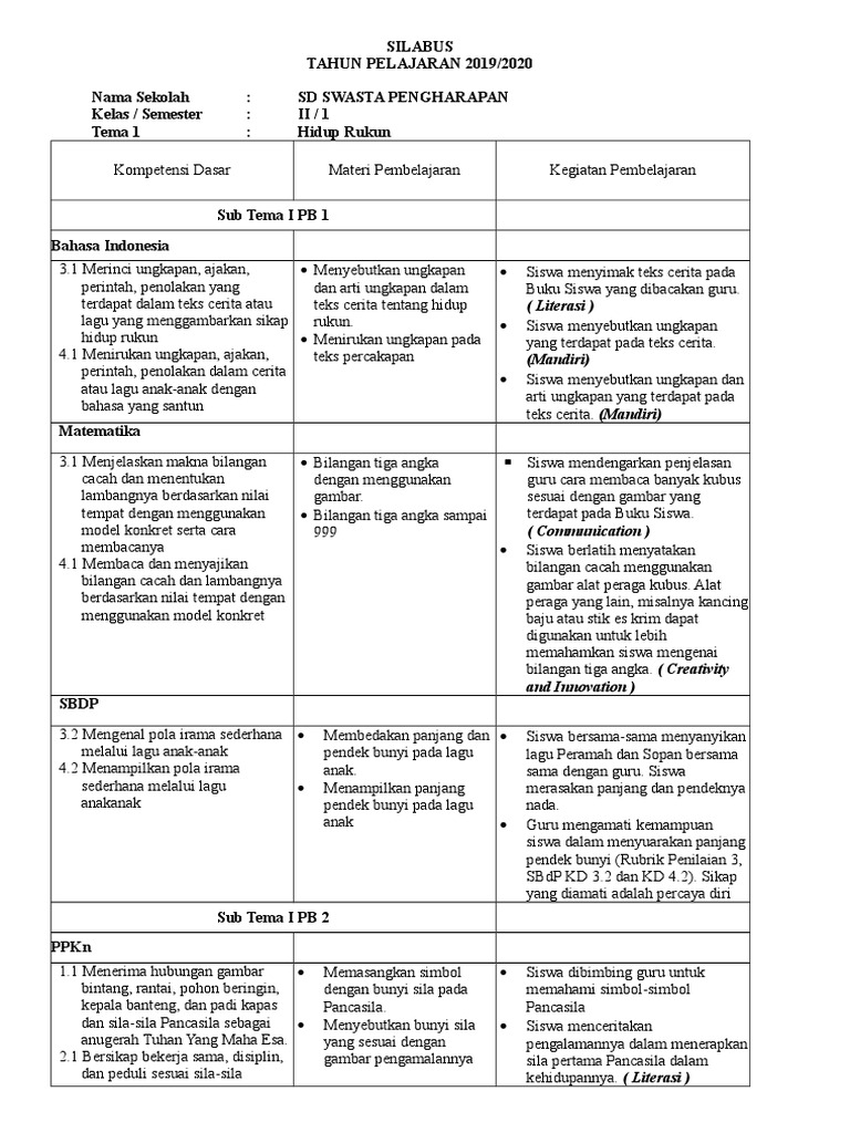 - 3 Rpp Tema 1 Subtema 1 Pb 1 Kelas 2 Sd - Biasanya Berbeda Dengan Kepribadian Anak.