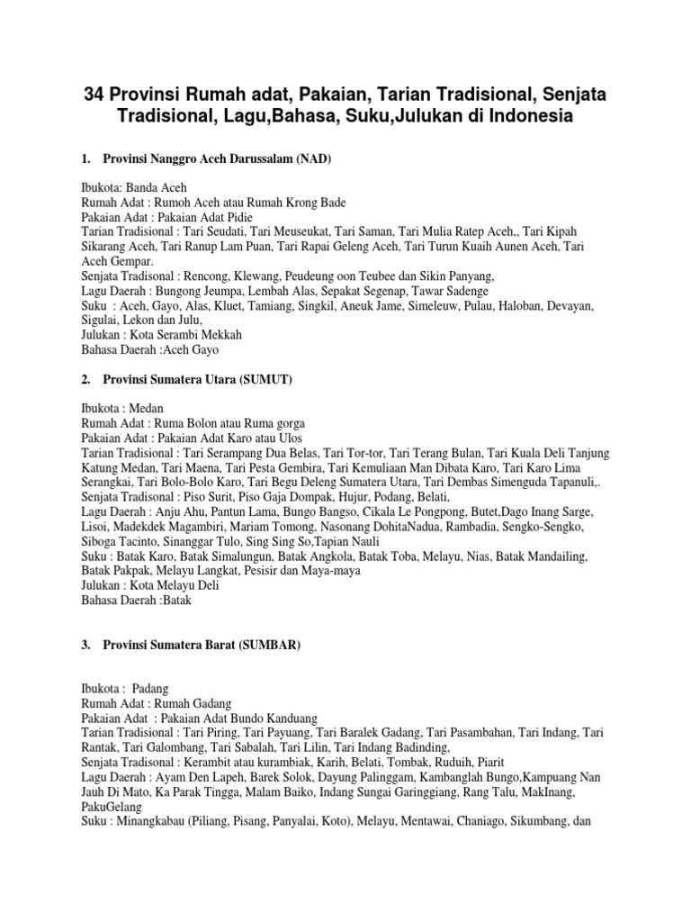 - 34 Provinsi Di Indonesia Beserta Pakaian Docx , Tak Heran Jika Di Indonesia Banyak Ditemui Beragam Budaya Yang Berbeda, Budaya Tersebut Bisa Berupa Tari.