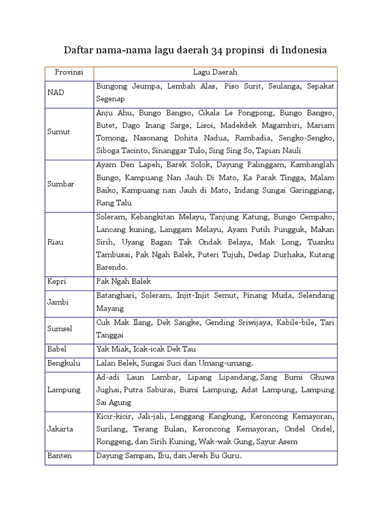 Pelajari juga tentang contoh lagu daerah 34 provinsi di indonesia, baca di brainly.co.id/tugas/670217.