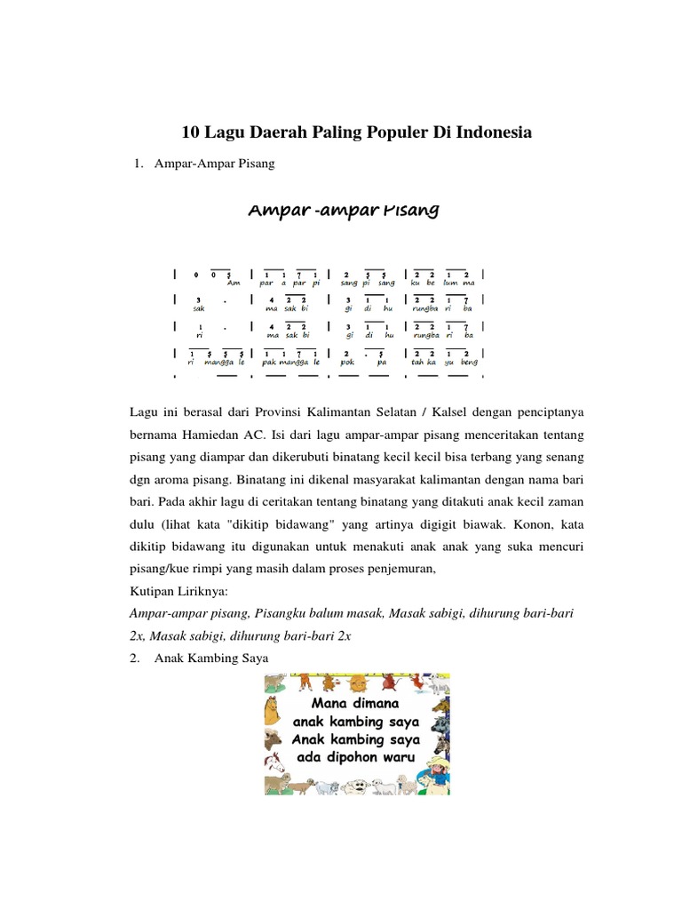 - Lagu Lagu Daerah Di Indonesia Beserta Daerah Asalnya Ilmu Pengetahuan Umum . Bahkan, Nggak Sedikit Juga Lho Lagu Indonesia Yang Populer Sampai Ke Luar Negeri, Geng.