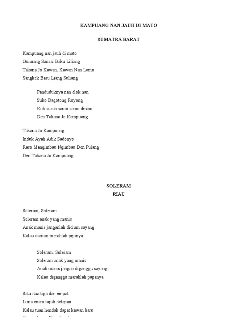 - Kampung Jauh Dimato Lagu Dan Tari Nusantara Lagu Anak Youtube , Takana Jo Kampuang Induak, Ayah, Adiak Sadonyo Raso.
