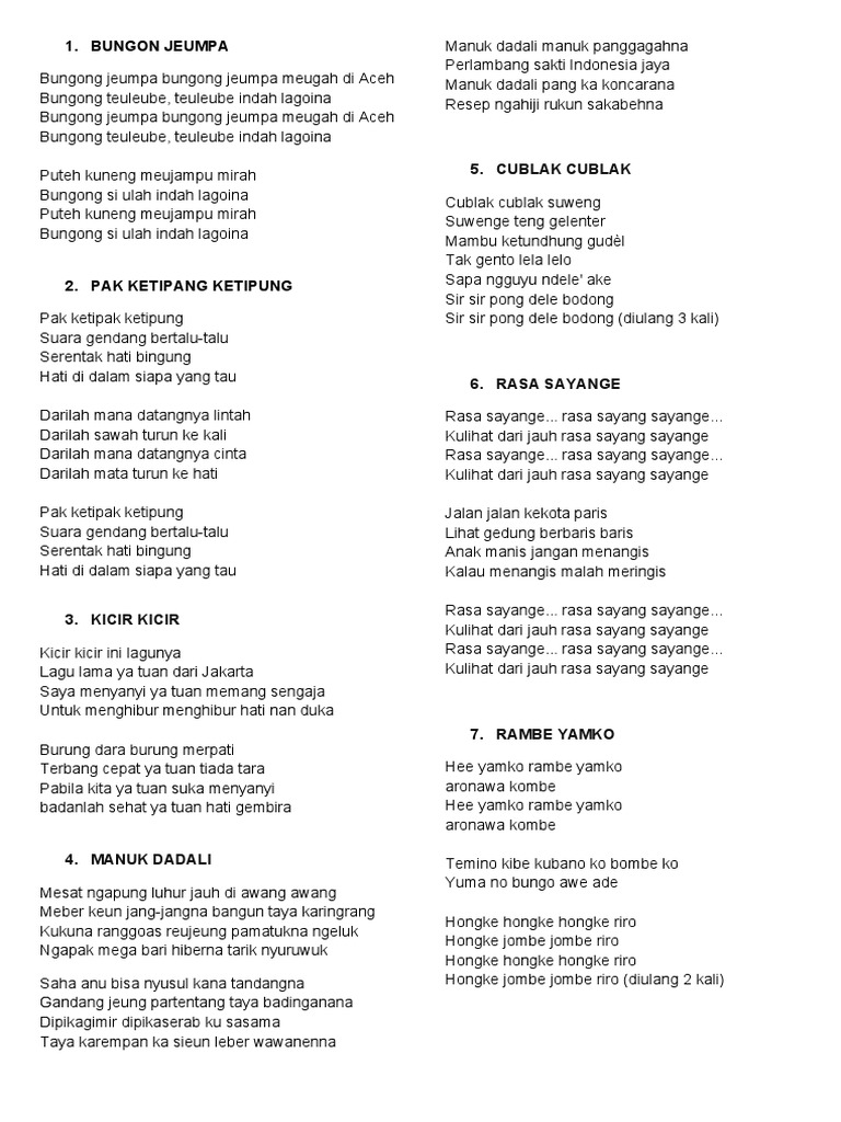 - Kumpulan Lirik Lagu Daerah , Download Lagu Mp3 & Video: