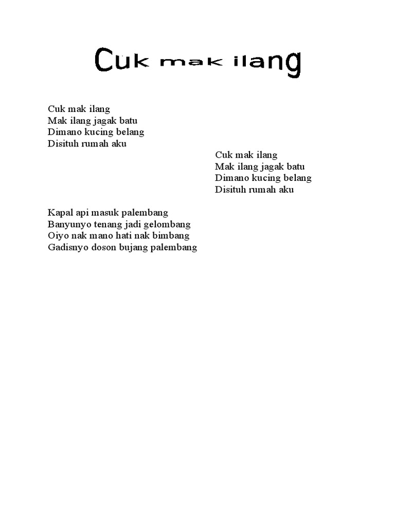 Lagu Daerah Palembang. Koleksi lagu daerah sumatera top play list : Aplikasi ini berisi kumpulan lagu daerah palembang terpopuler dan lengkap. Dalam aplikasi ini tersedia lagu palembang. Pengertian lagu daerah lagu daerah yaitu lagu yang lahir dan berkembang dari budaya daerah setempat bentuk lagu, lazimnya dinyatakan dalam syair atau lirik bahasa daerah di wilayah tersebut. Lagu palembang merupakan salah satu lagu yang berasal dari daerah palembang, lagu palembang ini tentunya punya kenangan tersendiri bagi anda. Lagu daerah palembang dan sumatera selatan memang sangat banyak yang populer, bahkan menjadi salah satu nilai budaya sumatera selatan. Jika anda merupakan penggemar daerah palembang, maka aplikasi ini wajib anda install. Terdapat banyak lagu yang dipopulerkan oleh. Download lagu lagu daerah palembang mp3 & video mp4 terbaru gratis. Download lagu gratis, download gudang lagu mp3 gratis, lagu barat terbaik. .lagu daerah sumatera selatan beserta not angka, not angka lagu palembang, not angka pianika cuk mak ilang, not angka lagu daerah palembang, not angka palembang darussalam. Salah satunya adalah lagu daerah palembang. Download lagu daerah palembang mp3 gratis, download mp3 daerah palembang, download musik daerah palembang. Untuk mengenal lebih jauh mengenai lagu daerah palembang, berikut penjelasannya. Direktori lengkap informasi lirik, makna, arti dan sejarah lagu wajib daerah yang berasal dari provinsi sumatera selatan.