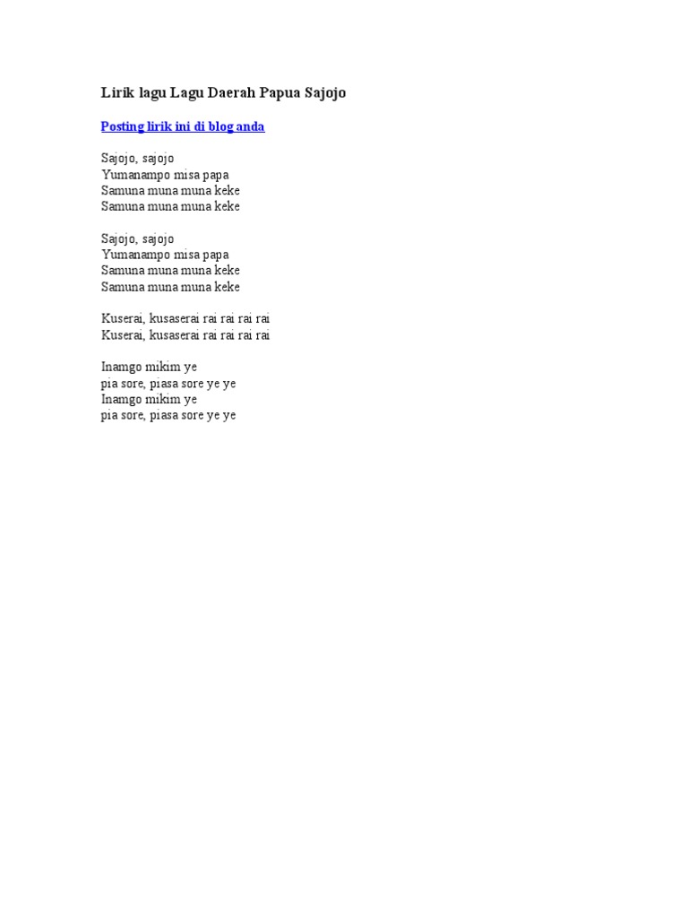 - Lirik Lagu Daerah Apuse Dari Daerah Papua Apuse Kokon Dao Sonora Id . We Provide Version 1.0, The Latest Version That Has Been Optimized For Different Devices.
