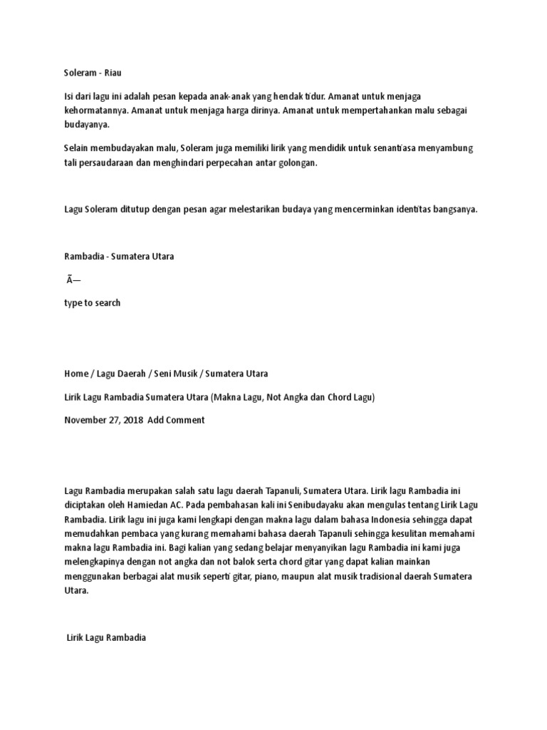 - Lagu Rambadia Asal Pencipta Lirik Terjemahan Not Angka Dan Chord Serta Maknanya , Download Lagu Rambadia Daerah Di Planetlagu.