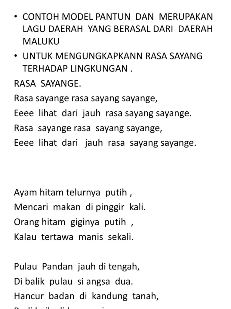- 7 Contoh Model Pantun . Rasa Sayange Mp3 / Mp4.