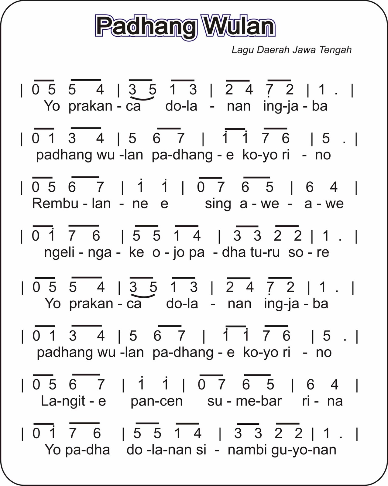 - Not Angka Lagu Padhang Wulan Daerah Jawa Tengah Not Angka Lagu Pianika Dan Piano - Lagu Ini Adalah Salah Satu Lagu Daerah Dari Ntt Yang Berjudul Anak Kambing Saya Yang Diciptakan Oleh Ibu Sud.