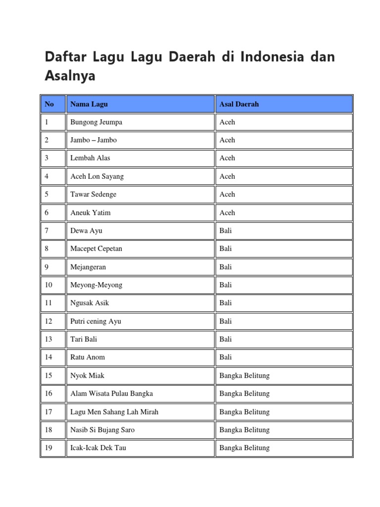 - Daftar Lagu Lagu Daerah Indonesia Dan Asalnya Lengkap 34 Provinsi - Tanpa Alasan Yang Jelas, Ibu Dari Anak Tersebut Membuangnya.