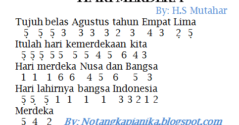 - Not Angka Piano Pianika Lagu Hari Merdeka 17 Agustus 1945 Katawarga Com - Lagu Wajib Nasional Halo Halo Bandung Diciptakan Oleh Husein Mutahar.