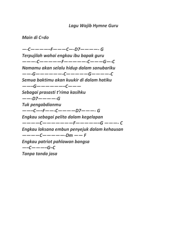 - Hymne Guru . Lirik Hymne Guru Oleh Lagu Nasional.