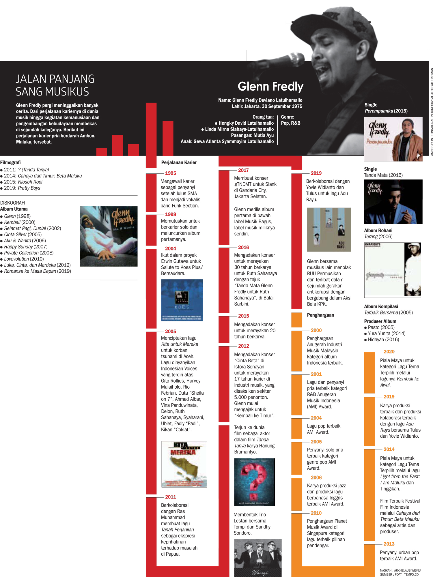 - Mimpi Mimpi Glenn Fredly Topik Koran Tempo Co : Bernama Lengkap Glenn Fredly Deviano Latuihamallo, Ia Memulai Karir Bermusiknya Sebagai Vokalis Band Funk Section Pada Tahun 1995.