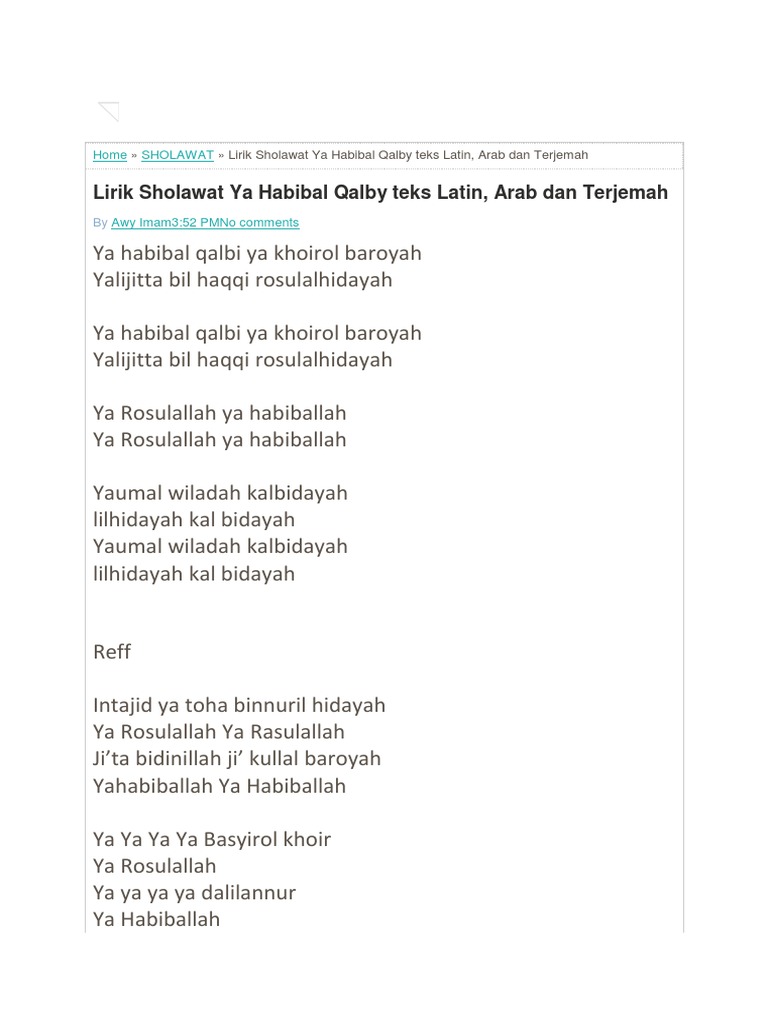 - Lirik Lagu Ya Habibal Qolbi Docx : Dan Berikut Ini Adalah Lirik Habibal Qalbi Beserta Dengan Terjemahan Supaya Kita Semakin Menghayati Ketika Menyanyikan Atau Melantunkan Salawab Kepada.