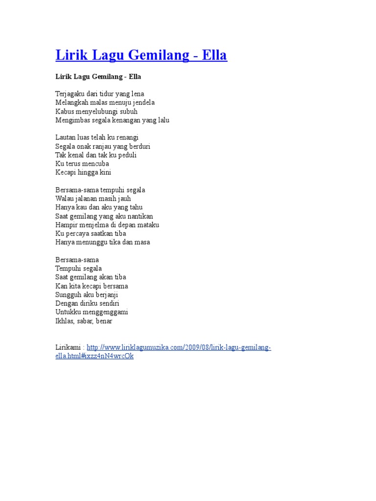 Lirik Lagu Indonesia Gemilang. Lirik dan chord nurlela dari. Kumpulan lirik lagu indonesia terbaru, lirik lagu peterpan, lirik lagu ungu, lirik lagu gigi, lirik lagu slank, lirik lagu iwan fals, lirik lagu cokelat disclaimer : Jalur gemilang… di bawah naunganmu jalur gemilang… kami semua bersatu perpaduan ketaatan amalan murni rakyat malaysia jalur gemilang. Tak pernah ku bayangkan ku kan jadi bintang. Lirik lagu jalur gemilang ini dicipta khas untuk bendera malaysia yang mengandungi nilai patriotik yang tinggi. Download mp3 jalur gemilang lirik gratis, ada 20 daftar lagu jalur gemilang lirik yang bisa anda download. Merahmu bara semangat waja putihmu bersih budi pekerti kuning berdaulat payung negara biru perpaduan kami semua puncak dunia telah kau tawan lautan luas. Anda tak mengetahui judul lagu, tapi mengetahui nama penyanyi. Hari terus berganti banyak yang tlah terjadi dirimu kian pasti segala kan ku raih bila esok menjelang bahagiapun kan datang bintang di angkasa bersinar gemilang. Merahmu bara semangat waja putihmu bersih budi pekerti kuning berdaulat payung negara biru perpaduan kami semua. Archive by category lirik lagu indonesia. Hari terus berganti banyak yang tlah terjadi dirimu kian pasti segala kan ku raih bila esok menjelang bahagiapun kan datang bintang di angkasa bersinar gemilang. Lagu barat home lagu indonesia. Dapatkan lirik lagu lain oleh andien di kapanlagi.com. Download lagu terbaru, gudang lagu mp3 gratis terbaik 2020.