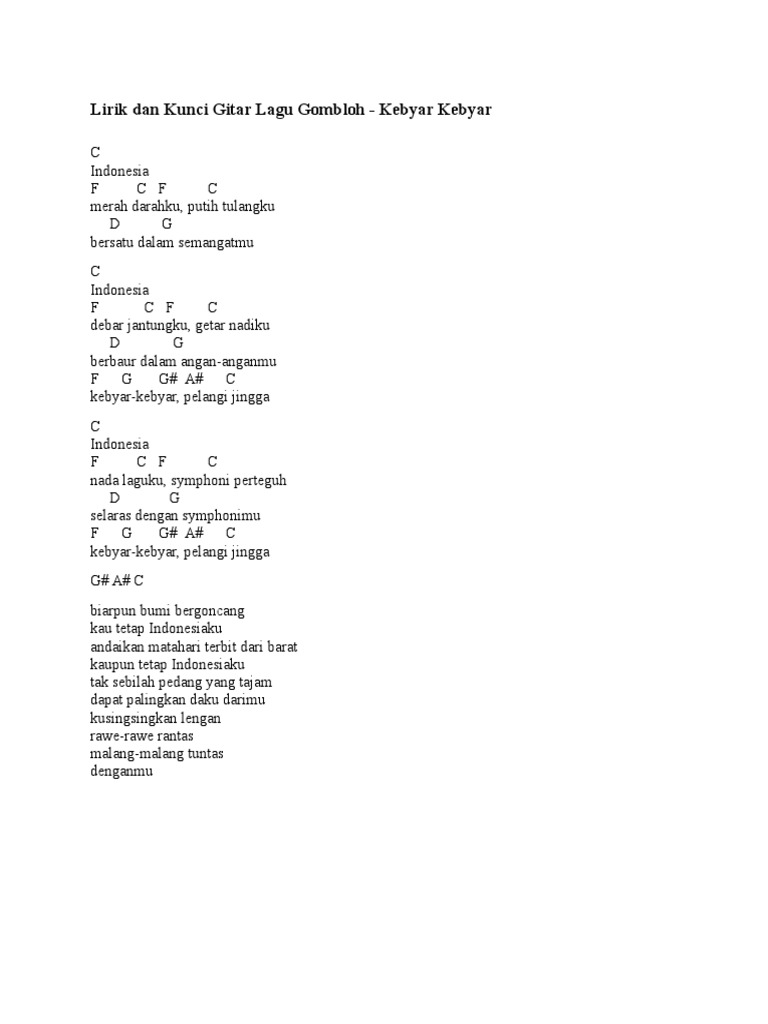 - Chord Gitar Dan Lirik Lagu Kebyar Kebyar Oleh Gombloh Mari Nyanyikan Lagu Patriotisme Ini , Lagu Ini Dirilis Lewat Album Gombloh, Apel (1986), Dan Menjadi Salah Satu Lagu Gombloh Yang Paling Sukses Secara Komersial.