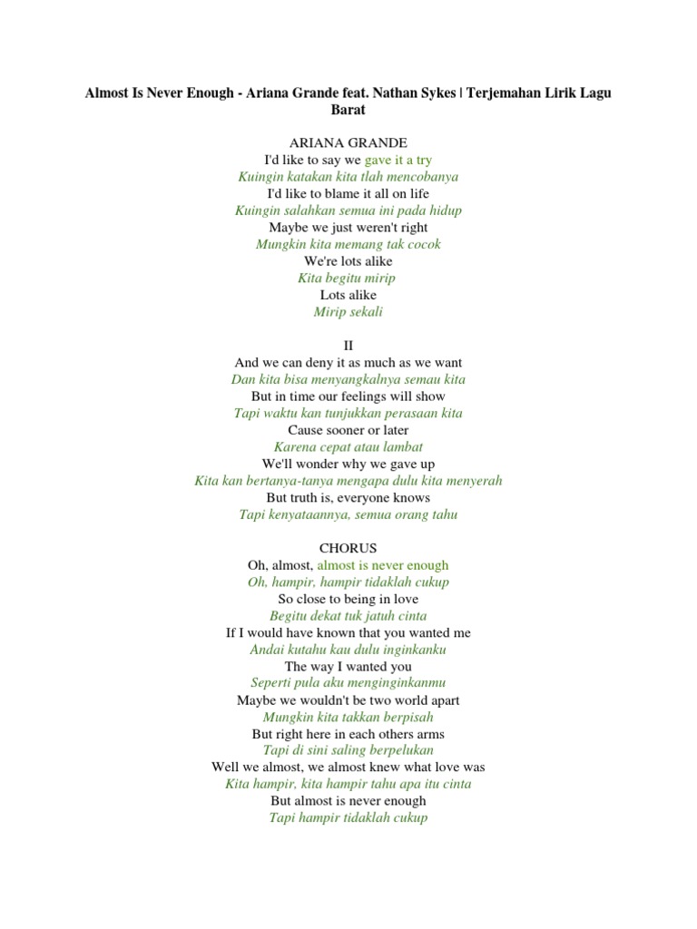 - Judika Never Enough Ost The Greatest Showman Lirik Dan Terjemahan Youtube : But Almost Is Never Enough.